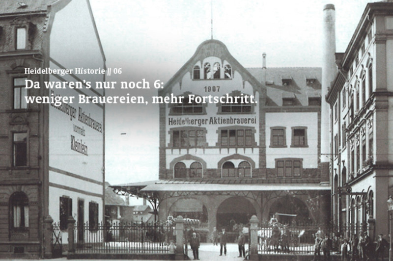 Von der einstigen Vielzahl an Brauereien waren um 1900 nur mehr sechs in Betrieb: Kleinlein, Schroedl, Engel, Goldenes Fässchen, Krone und Ziegler. Ein Großteil dieser Brauereien wurde aufgekauft oder stillgelegt, sodass 1920 nur noch die Engel-Brauerei und die Heidelberger Aktienbrauerei existierten. Und der Fortschritt machte auch vor unserer Stammbrauerei nicht Halt. Die erste Eismaschine wurde bereits 1887 bestellt. 1912 wurden erstmals zur Bierauslieferung Lastautos verwendet und neue Dampfmaschinen aufgestellt. Im letzten Geschäftsjahr vor dem Krieg war die Heidelberger Aktienbrauerei dann die führende lokale Brauerei und eine der größten in Baden.